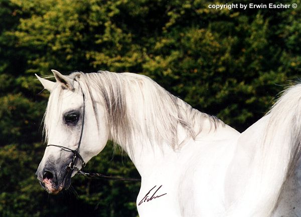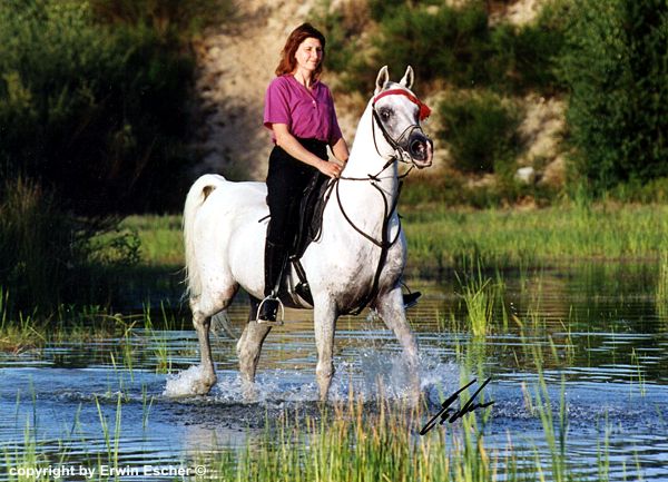 It was 1978 when we first fell in love with Arabian horses, resulting in the acquisition of the straight egyptian stallion Shams El Fakhri (Farouk x Inshraa). We started him under saddle and trained him ourselves in the following years. Fakhri proved to be a real tough horse. We used him first for riding and later on also for breeding purposes. He was successful in jumping competitions and did very well on numerous long distance rides.